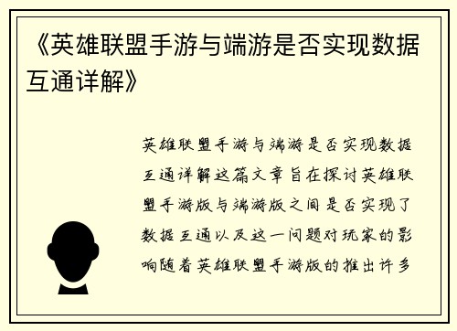《英雄联盟手游与端游是否实现数据互通详解》