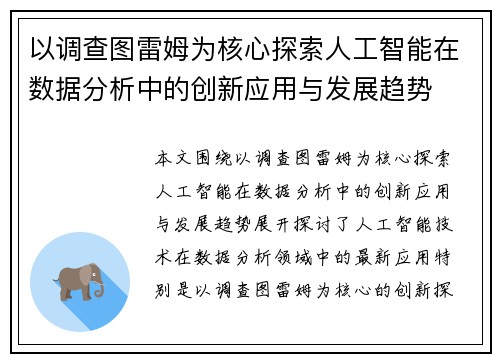 以调查图雷姆为核心探索人工智能在数据分析中的创新应用与发展趋势