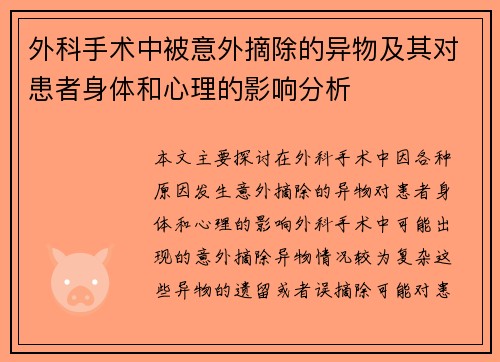 外科手术中被意外摘除的异物及其对患者身体和心理的影响分析